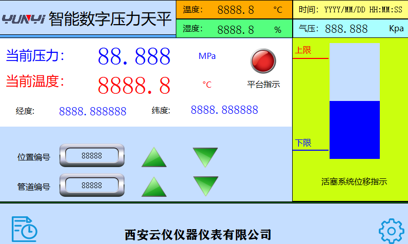 为了使压力天平的平衡更加直观,我们首次引入了指示灯指示系统,当压力天平发生变化同一个指示灯就会变化为不同的颜色。