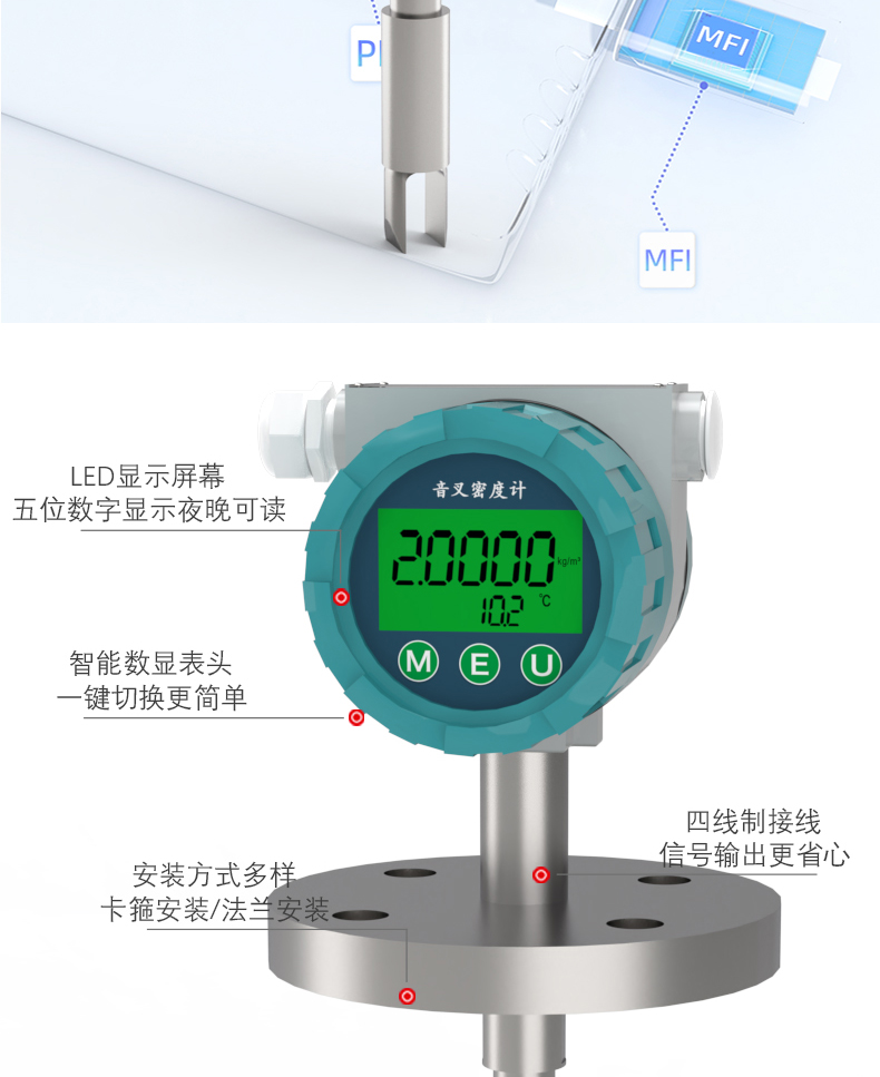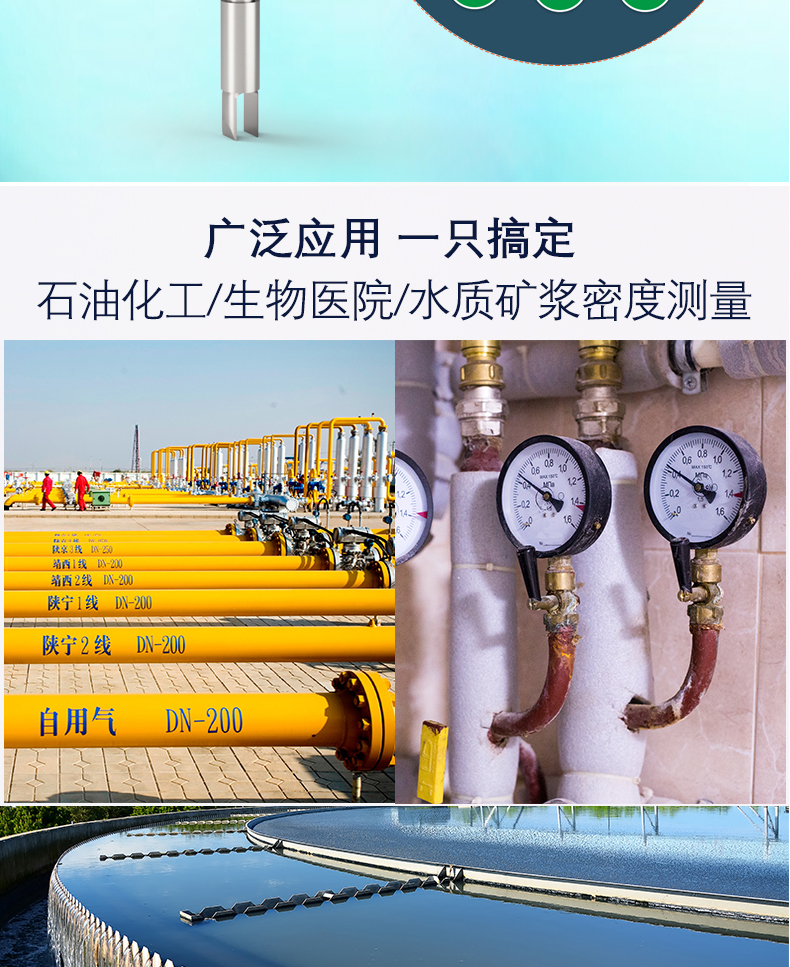 音叉密度计的应用行业: 送煤过程中煤泥密度(浓度)的测选矿过程中矿浆密度(浓度)的测量; 糖浆密度(浓度)的测量:; 淀粉乳液密度(浓度)(干物质质量)的测量; 脱硫项目石灰浆密度(浓度)的测量、报警; 脱硝项目氨水密度(浓度)测量; 医药行业浓缩溶液密度(浓度)测量; 酒精和水液面密度(浓度)测量 ; 各种类输送管道或罐体密度(浓度)测量;